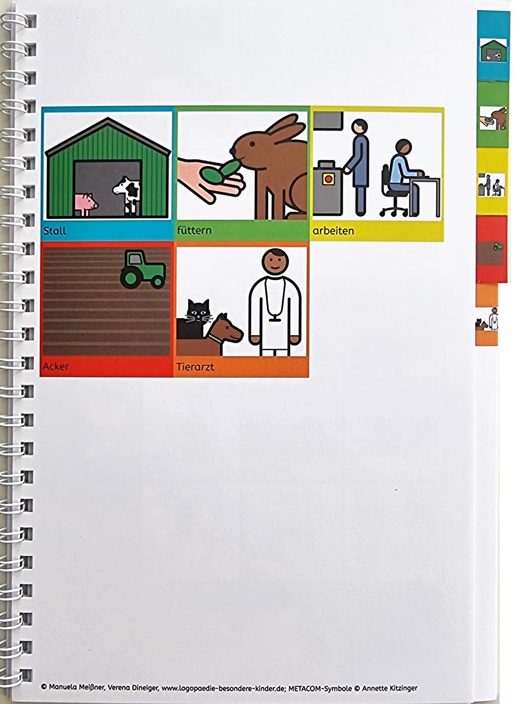 Die Bücher sind alle nach einem ähnlichen Prinzip aufgebaut: Sie enthalten METACOM Symbole ©Annette Kitzinger, orientieren sich dabei an der App Metatalk.de und enthalten die gleichbleibende Kernwortschatzleiste.