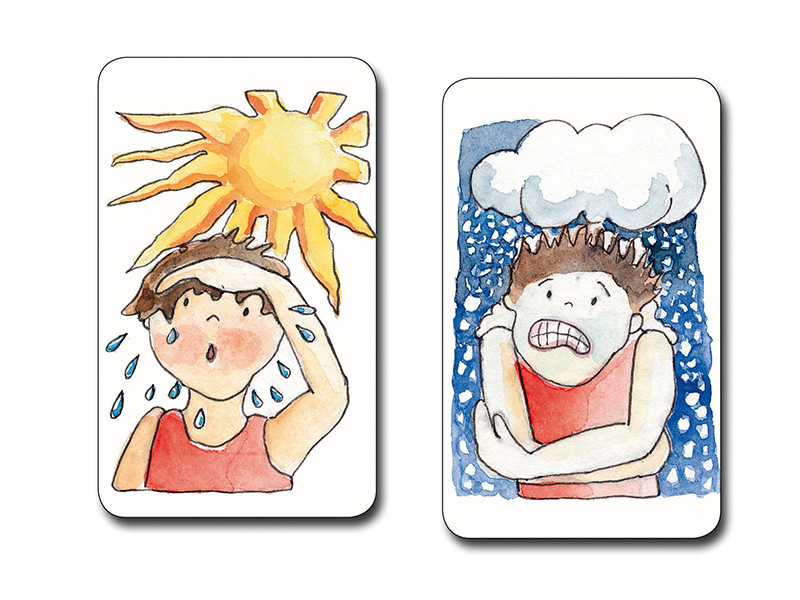 Kartenpaare mit 15 Gegensätzen (heiß-kalt, jung-alt,...) werden gesucht. Aber ein schwarzer Kater hat sich unter die Karten gemogelt. Wer den am Ende hat, hat verloren.