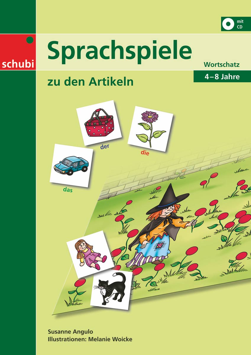 Der Spieleband erleichtert Kindern ohne oder mit geringen Deutschkenntnissen sowie Kindern mit einer Sprachentwicklungsstörung den Erwerb der Artikel. Dazu werden 175 Begriffe aus dem Alltag und 25 Begriffe zu den Körperteilen angeboten. Das auditive Gedächtnis der Kinder wird visuell durch farbige, geometrische Formen - Artikelzeichen - und motorisch durch drei spezifische Handzeichen - Artikelhandzeichen - zu den Artikeln unterstützt. Die Artikelzeichen auf den Rückseiten der Bildkarten ermöglichen eine schnelle Selbstkontrolle. Der Zauberer, die Hexe und das Gespenst helfen den Kindern bei der Zuordnung des richtigen Artikels zum jeweiligen Nomen. Audiodateien ergänzen das Material. Sie kommen in einzelnen Spielen zum Einsatz, können aber auch zusammen mit den Kopiervorlagen zum häuslichen Üben des Wortschatzes verwendet werden.