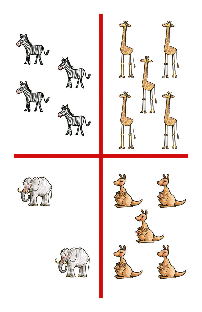 Beispiel Spiel „Wilde Tiere“: Der Spieler wählt ein Tier aus und fragt „Hast du Tiger?“ - Der Mitspieler schaut nach und sagt: „Ja, ich hab drei Tiger!“ - Antwort: „Ich habe fünf Tiger!“