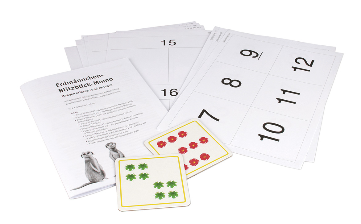 Verschiedene Memo-Varianten erweitern das Spiel um ordinale Zahlaspekte und verknüpfen kardinale Zahlvorstellungen mit dem Teil-Teil-Ganzes-Konzept.
