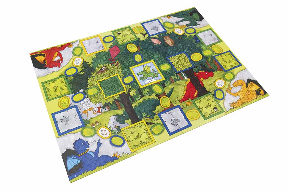 Das große Brettspiel wird dabei je nach Spielvariante mit den Bildkarten kombiniert, um mit den vier Spielvarianten von der Laut- über die Silben- und Wortebene bis hin zur Einbindung im Satz die finalen Konsonanten anzubieten. Eingebettet in die wunderschön und liebevoll illustrierte Rahmengeschichte des Drachenwaldes, in dem vier Drachenfamilien hausen, hat jede Drachenfamilie ihren eigenen Drachenlaut. Dabei werden je nach Spielvariante verschiedene Abenteuer erlebt: Mal haben die Drachen ihren Drachenlaut oder den Weg zu ihren Höhlen vergessen oder ihnen hat ein Sturm allerlei Gegenstände durcheinandergewirbelt.