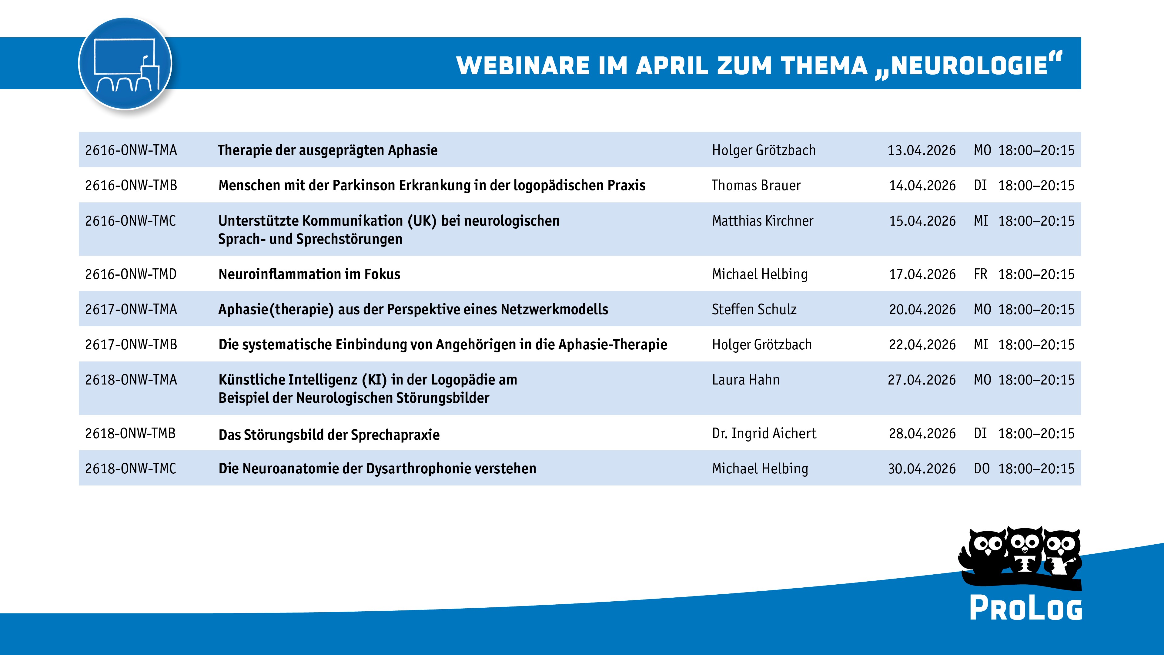 Schon buchbar sind aber auch die Webinare für unseren Themenmonat zur "Neurologie" im April.
