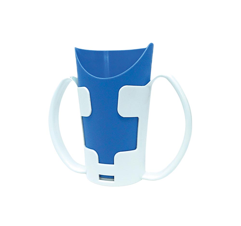 Der Becherhalter psst zum "Becher mit Nasenausschnitt" (passend für den Becher mit der Art.-Nr. 221155) und vereinfacht es, ihn sicher zu halten.