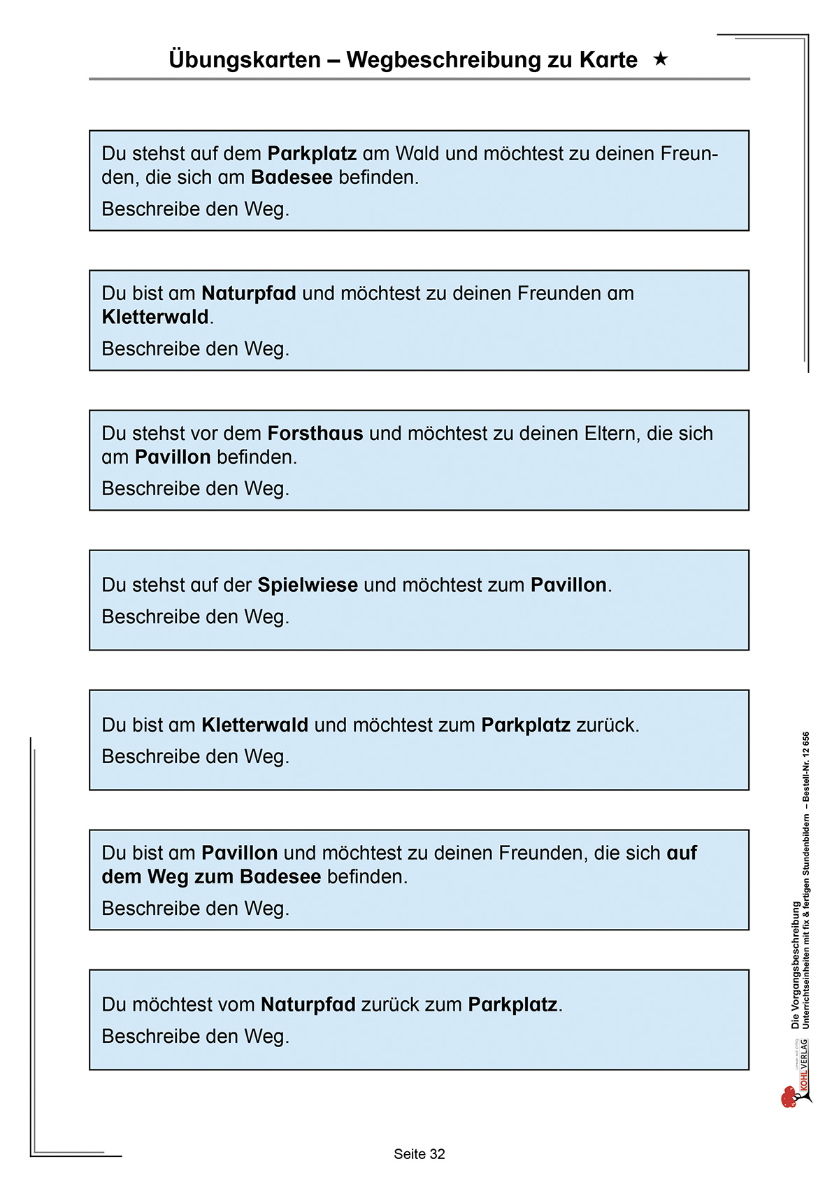Übungskarten - Wegbeschreibung zu Karte (in drei verschiedenen Schwierigkeitsvarianten)