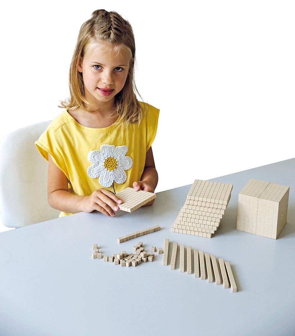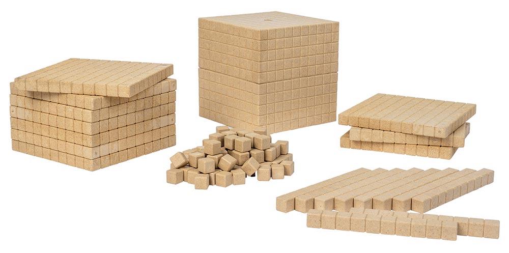 121-tlg.: 100 Einer-Würfel, 10 Zehner-Stäbe, 10 Hunderter-Platten, 1 Tausender-Würfel, aus nachhaltigem Re-Wood®, naturfarben