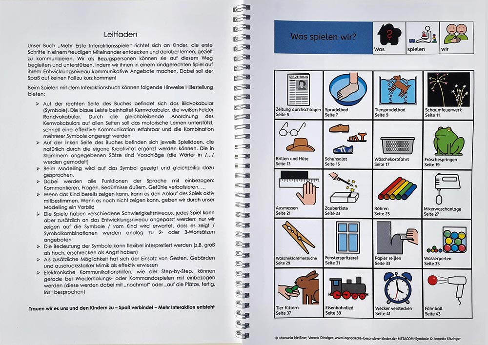 Das Interaktionsbuch richtet sich an Kinder, die erste Schritte in einem freudigen Miteinander entdecken und darüber lernen, gezielt zu kommunizieren. Mit 20 Spielideen und METACOM-Symbolen von ©Annette Kitzinger.
