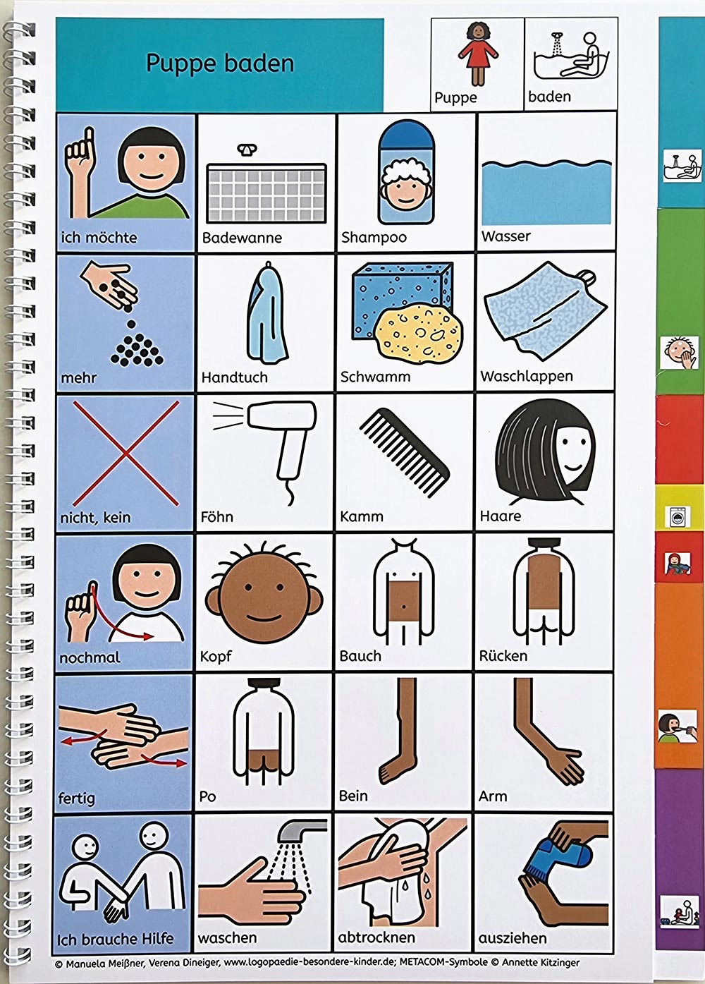 Die Bücher sind alle nach einem ähnlichen Prinzip aufgebaut: Sie enthalten METACOM Symbole ©Annette Kitzinger, orientieren sich dabei an der App Metatalk.de und enthalten die gleichbleibende Kernwortschatzleiste.