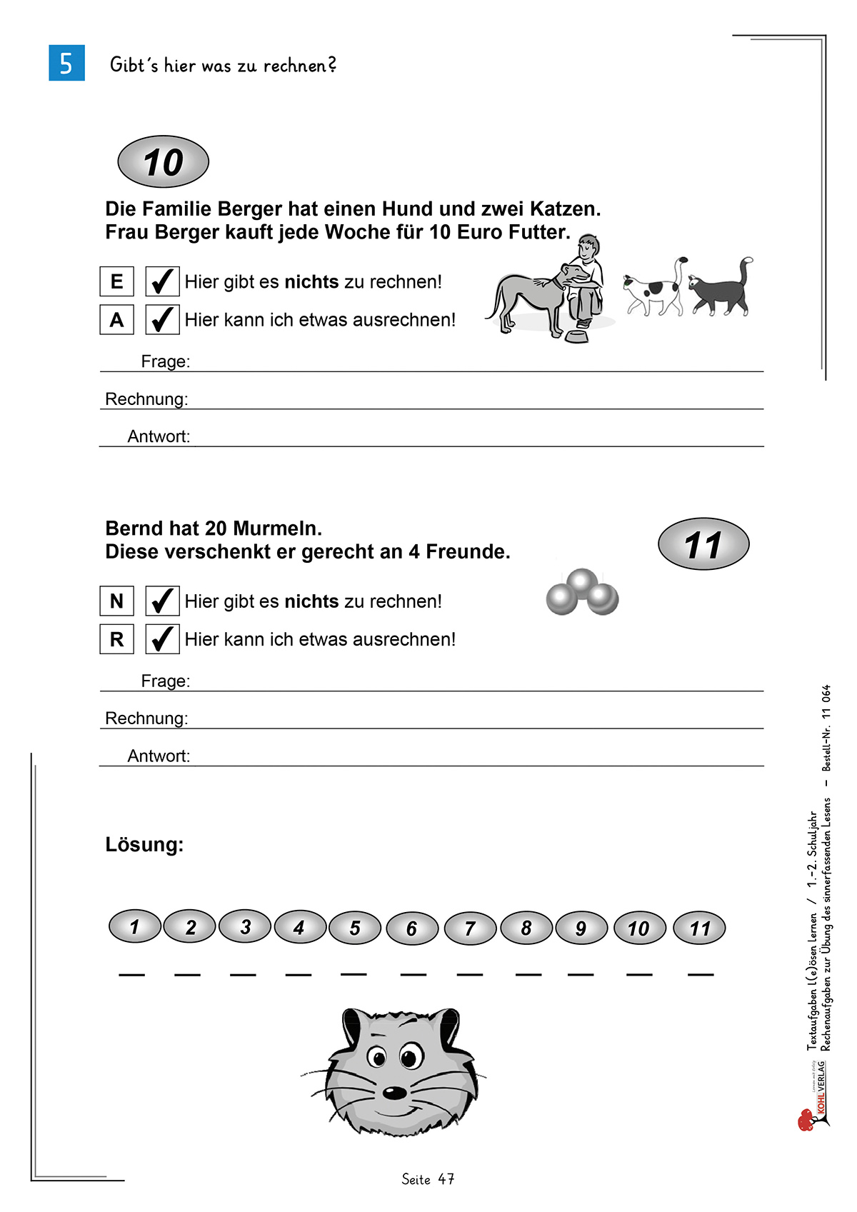 Gerade für diese Fälle ist das vorliegende Übungsheft gedacht. Es kann natürlich kein Patentrezept oder Allheilmittel liefern. Es versteht sich vielmehr als ein Zusatzangebot an Übungsmaterial zur Verbesserung der Leseleistung bei Textaufgaben, um schließlich das Lesen bzw. das Lösen künftiger schwierigerer Textaufgaben anzubahnen und zu trainieren und dadurch das Kind auf seinem Weg zur „Text-Kompetenz“ zu unterstützen.