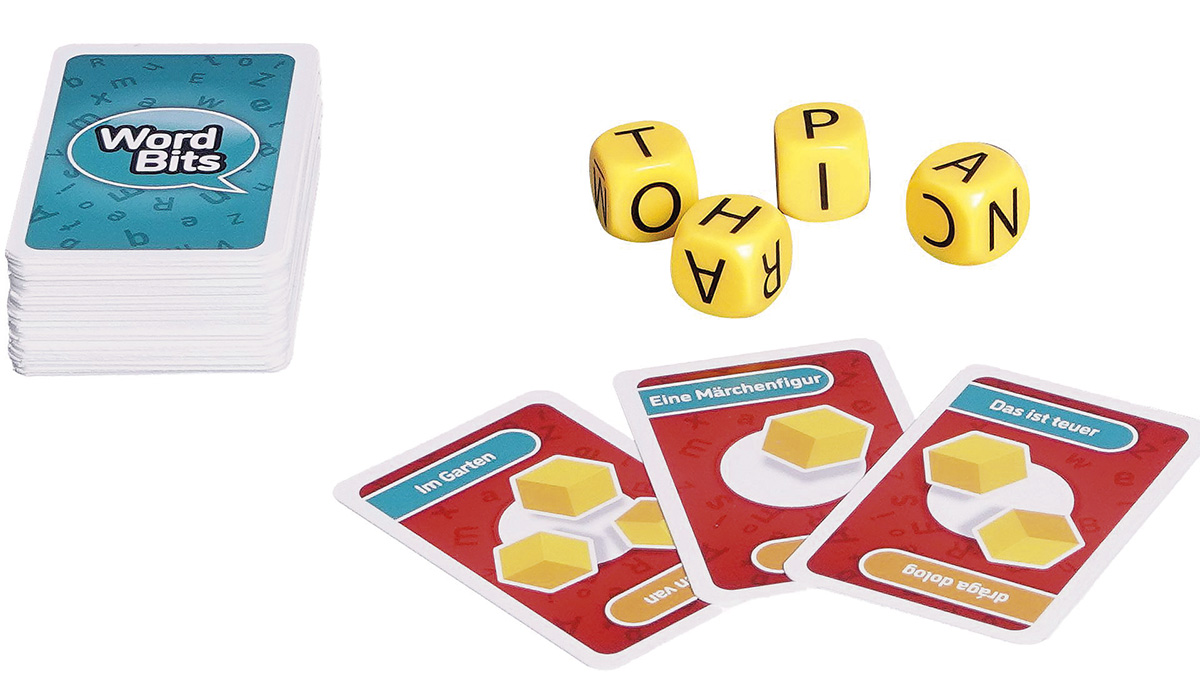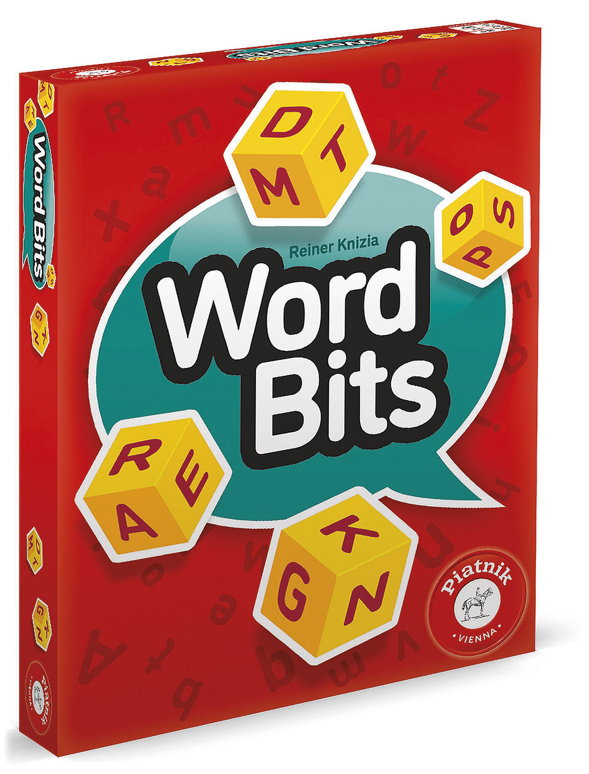 Beim pfiffigen „Word Bits“ sind alle mit Sinn für flinke Kombinationen und kreative Wortschöpfungen eindeutig im Vorteil. Die Regeln für „Word Bits“ sind rasch erklärt: Vom Stapel wird eine Karte aufgedeckt, die eine bestimmte Kategorie nennt, beispielsweise „Im Ozean“ oder „Das ist teuer“. Zudem zeigt die Karte, mit wie vielen Buchstabenwürfeln gespielt wird. Jetzt gilt es für alle gleichzeitig, aus den gewürfelten Kombinationen möglichst schnell eine passende Antwort zu formulieren. Die geforderten Buchstaben dürfen dabei in beliebiger Reihenfolge verwendet und natürlich mit anderen Buchstaben ergänzt werden.