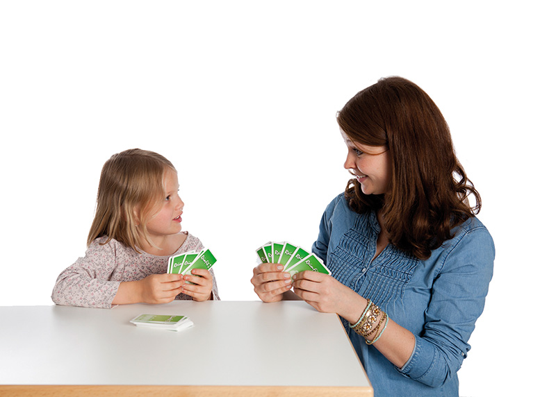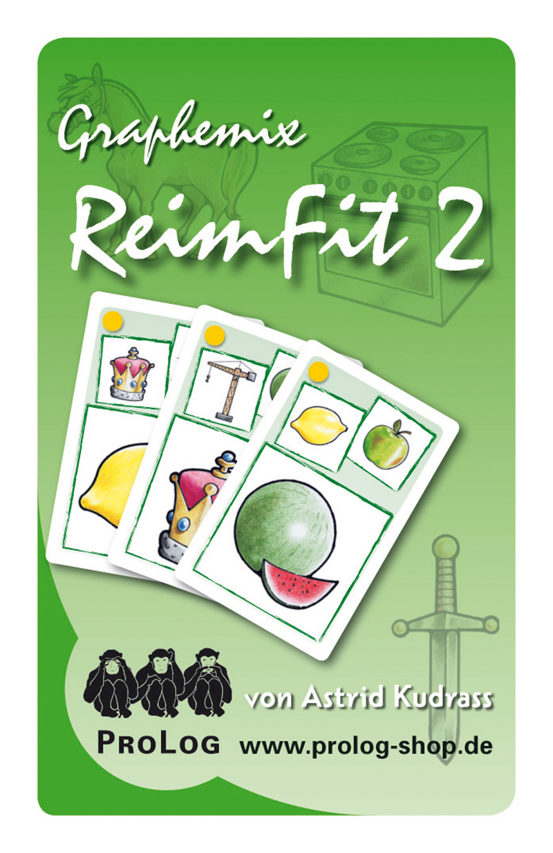 Durch Spielkarten mit Reimen und semantisch oder phonologisch ähnlichen Ablenkern lernt das spielende Kind sich vom Wortinhalt und von phonologischen Ähnlichkeiten zu lösen und die Wortgestalt zu beachten. Hier mit 3er-Reimen.
