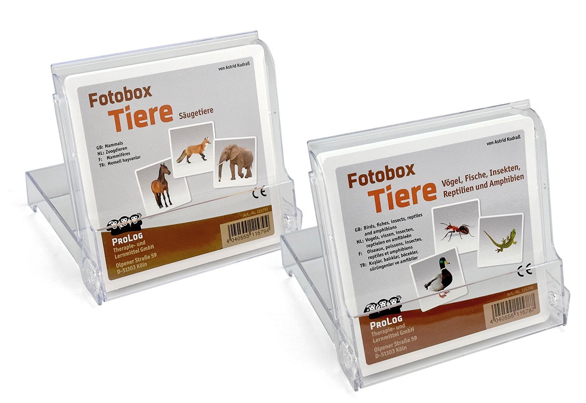 Diese Fotobox ist eine von zwei Fotoboxen "Tiere", die auf jeweils 36 Karten einen Teil unserer Mitbewohner auf dieser Erde darstellen. Sie eignen sich bspw. für Übungen zum Benennen, Umschreiben oder Kategorisieren (strukturierter Wortschatzaufbau).