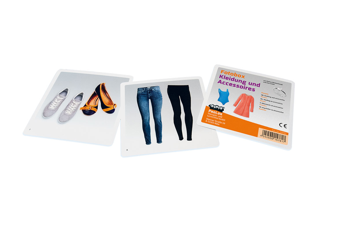 Was ist abgebildet und wer trägt es normalerweise? In dieser Box sind farbige Fotos von Kleidungsstücken und Accessoires enthalten. Die einzelnen Boxen enthalten typische, aber auch seltenere Items, sodass eine Vielzahl an alltagsnahem Fotomaterial geboten wird. Die Fotokarten können beispielsweise in Übungen zum Benennen, Umschreiben oder Kategorisieren eingesetzt werden.