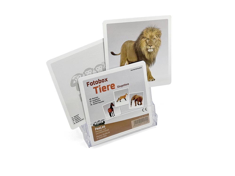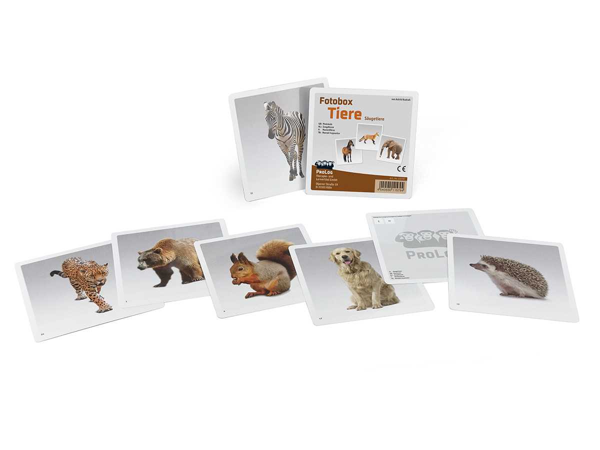 Diese Fotobox ist eine von zwei Fotoboxen "Tiere", die auf jeweils 36 Karten einen Teil unserer Mitbewohner auf dieser Erde darstellen. Sie eignen sich bspw. für Übungen zum Benennen, Umschreiben oder Kategorisieren (strukturierter Wortschatzaufbau).