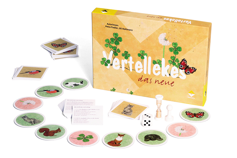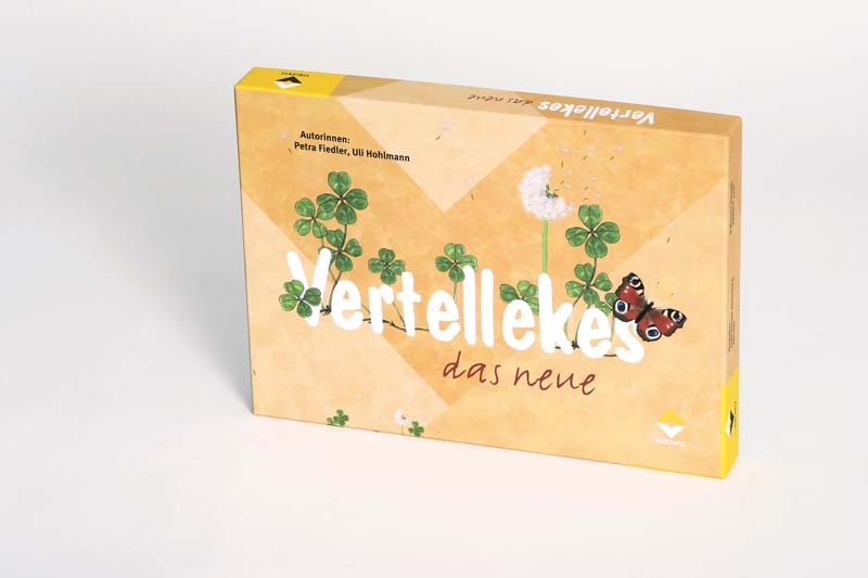 "Vertellekes" besticht durch farbenfrohe Spielkarten, variable Spielfeldgestaltung durch auslegbare Karten, Themenbereiche wie Schlager- und Stichworträtsel, Fragen für bekannte Rätselarten wie Wortsammlung und Redensartenrätsel. Die Spielanleitung erläutert neue Erkenntnisse in der Betreuung demenzkranker Menschen und erweitert die Sicht auf das Spiel und die Einsatzmöglichkeiten. Beieinandersitzen, sich Geschichten erzählen: Das ist der Grundgedanke dieses Frage- und Antwortspiels. Das Spiel soll Anstöße geben zum Erinnern, Nachdenken, Schmunzeln und Singen. Ohne Versagensangst und Leistungsdruck nehmen die Spieler Positives wahr, sehen ihre eigene Persönlichkeit und ihr Selbstwertgefühl gefördert, lernen sich gegenseitig kennen, haben ein Gemeinschaftserlebnis und tauschen Erfahrungen aus.