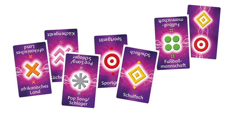 Nacheinander werden Karten aufgedeckt, auf denen eines von acht Symbolen abgebildet und ein Begriff genannt ist. Sobald zwei Spieler eine Karte mit demselben Symbol vor sich liegen haben, geht es darum, als Erster ein Wort zum Begriff der Mitspielerkarte zu sagen. Der eine nennt eine Sportart, z. B. Fußball, der andere ein Fahrzeug, z. B. Zug. Wer am schnellsten antwortet, erhält die Karte des Mitspielers. Die Karten ändern sich ständig, so dass schnelles Kombinieren und Reagieren notwendig ist.