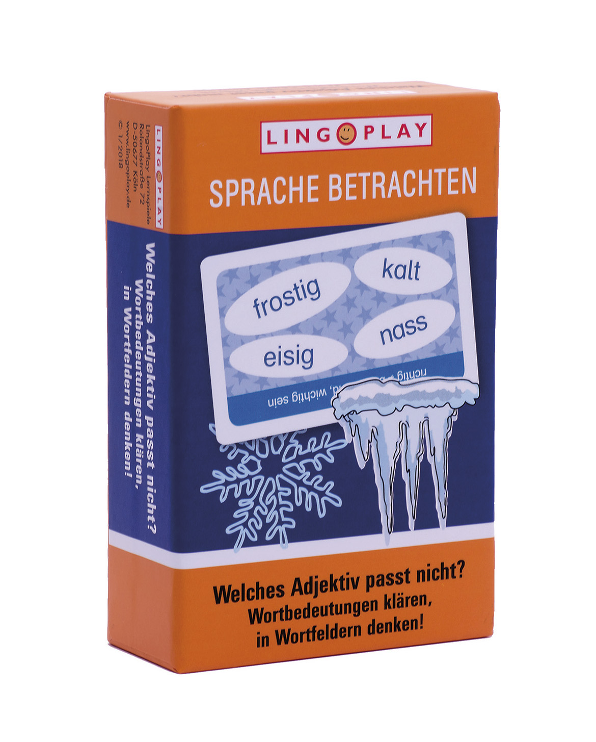 Frostig, kalt, eisig, nass? Was passt nicht? Welches Wort passt nicht zur Gruppe? Die Spieler lernen hier, zahlreiche sinnverwandte Wörter mit ähnlicher Bedeutung zu erkennen, um herauszufinden, welches nicht zur Gruppe passt. Die Spieler verbessern so ihre Ausdrucksfähigkeit. Darüber hinaus werden sie angeregt, über Wortbedeutungen nachzudenken und sie mit eigenen Worten wiederzugeben. Das Lernen in Wortfeldern und Kategorien verbessert die Wortaktivierung, erleichtert den Wortabruf und erweitert den Wortschatz.