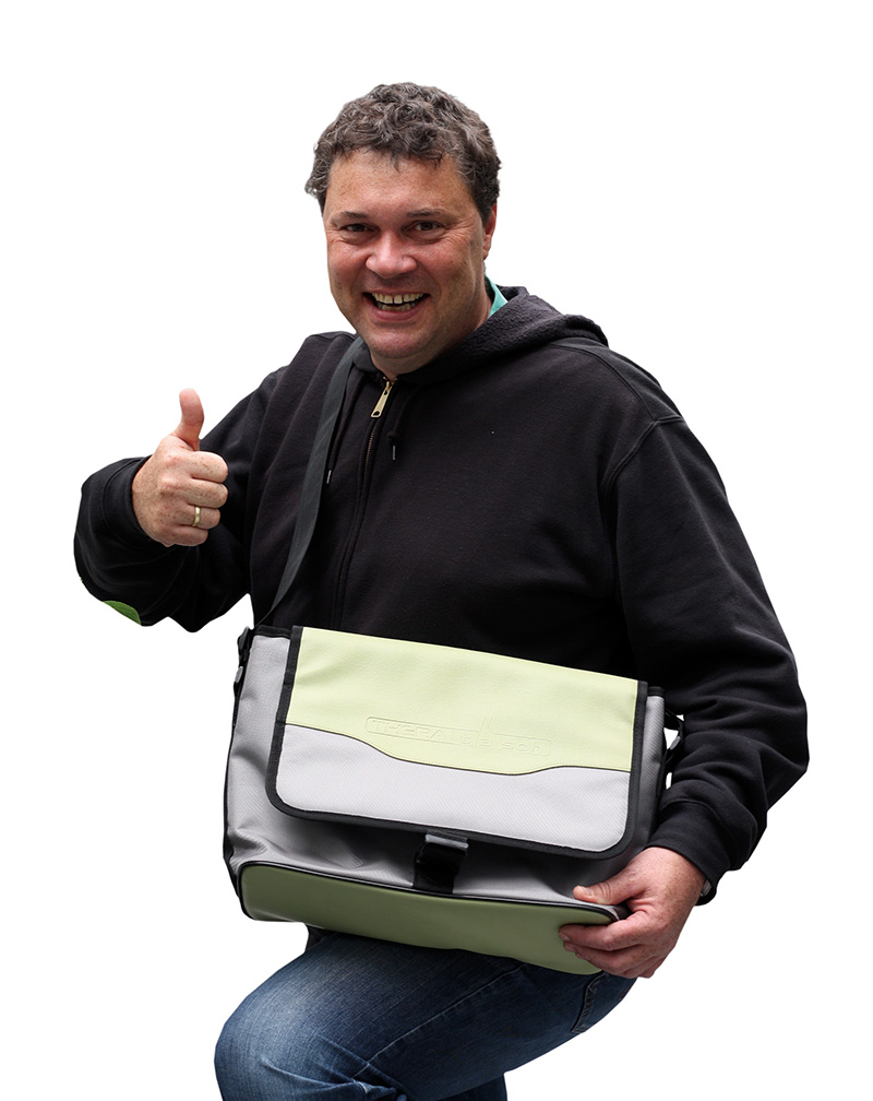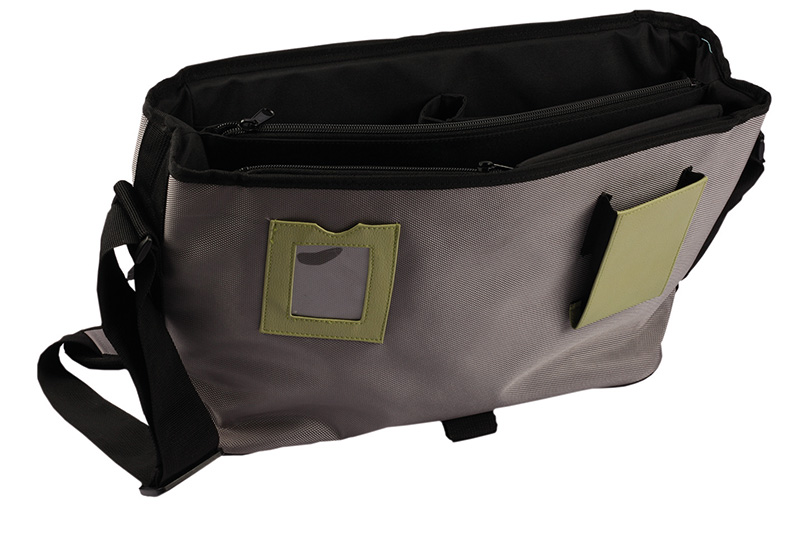 stabile Tasche mit Umhängegurt, div. Innentaschen (teilw. mit Reißverschlüssen) und Halterungen durch Gummibänder. Komplett desinfizierbar (Wischdesinfekion mit Tüchern)