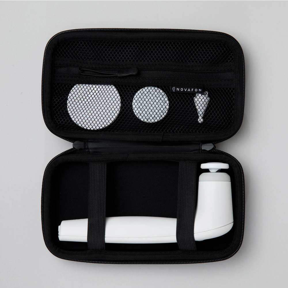 Dieses platzsparende Case wurde speziell zur Aufbewahrung eines einzelnen neuen NOVAFON®-Geräts einschließlich Netzteil/Kabel oder Lieblingsaufsätzen konzipiert. Individuelles Zubehör kann darüber hinaus bequem in der im Deckel befindlichen Netztasche verstaut werden. Und wenn es unterwegs mal nur das Notwendigste sein soll, dann ist das optional erhältliche Einzelcase der ideale Begleiter.