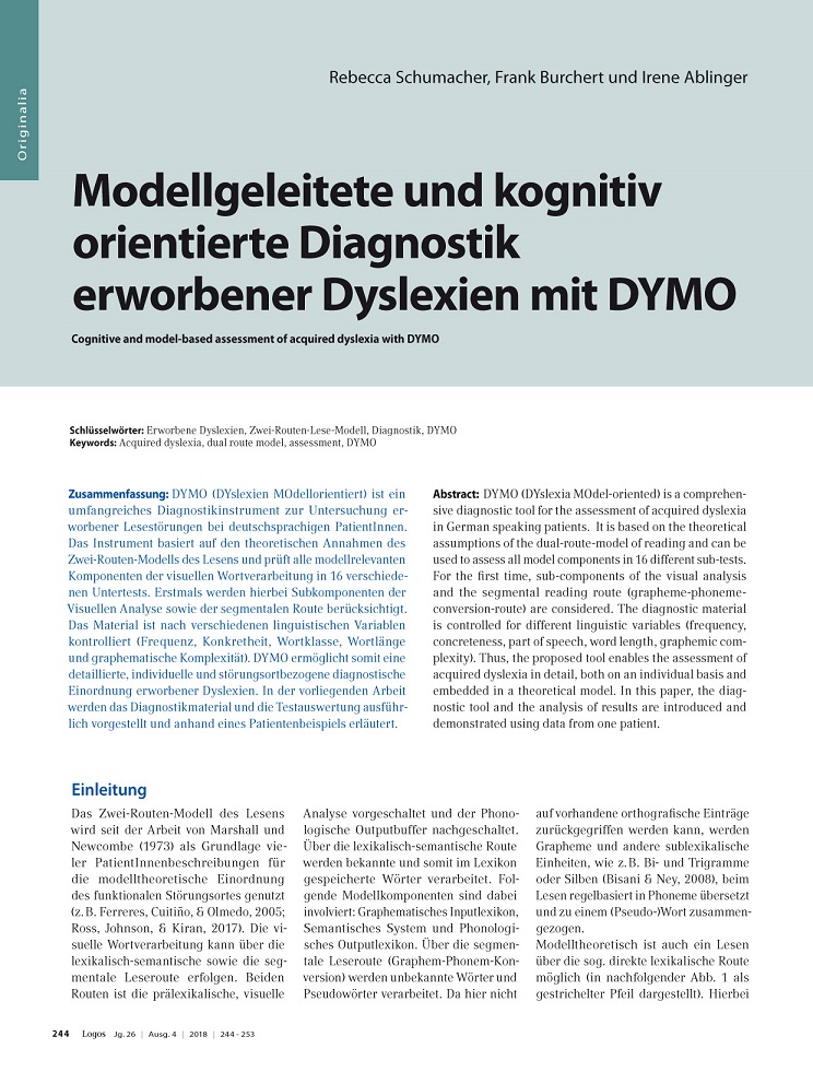Modellgeleitete und kognitiv orientierte Diagnostik erworbener Dyslexien mit DYMO