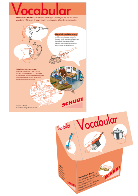 farbige Wortschatz-Bilder in der Klappbox (84-88 Bilder) und ca. 40 Kopiervorlagen passend zum Bildmaterial der jeweiligen Box