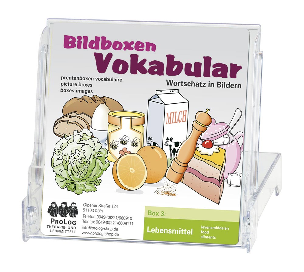 Auf 160 Bildkarten sind Dinge abgebildet, die im Alltag häufig vorkommen. Die farbigen Abbildungen sind übersichtlich, klar und eindeutig und setzen neue Maßstäbe für die natur- und objektgetreue zeichnerische Abbildung.Box 1: Gegenstände, Box 2: Kleidung, Box 3: Lebensmittel, Box 4: Tiere und Menschen