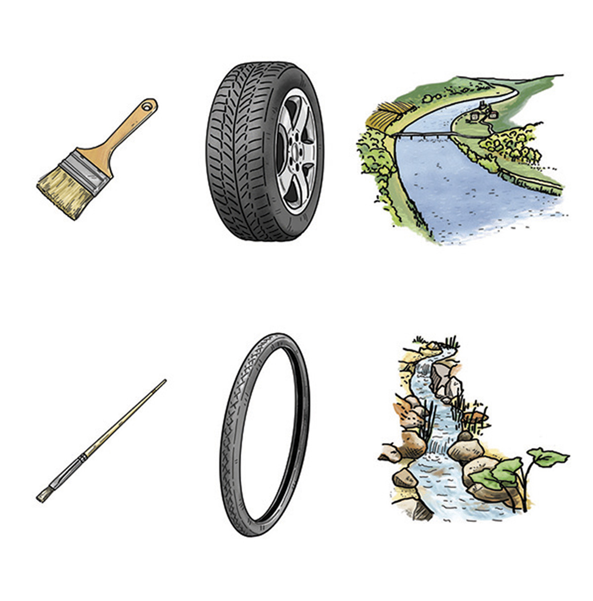 Die Bildkarten bestehen aus zwölf Serien mit je sechs Bildern (Sextetten). Jede Serie hat drei Motivpaare zu einem gegensätzlichen Adjektivpaar (z.B. groß - klein). Zu jeder Serie (Gegensatzpaar) gibt es eine Sammelkarte, auf der alle sechs Einzelmotive im Überblick, verkleinert dargestellt sind. Sie sind als Gegensatzpaare übereinander abgebildet. Die Begriffe zu den Gegensatzpaaren lassen sich steigern. Die Motive dazu sind auf der Sammelkarte nebeneinander abgebildet. Der Wortschatz ist lehrmittelunabhängig und für alle Alterstufen geeignet.