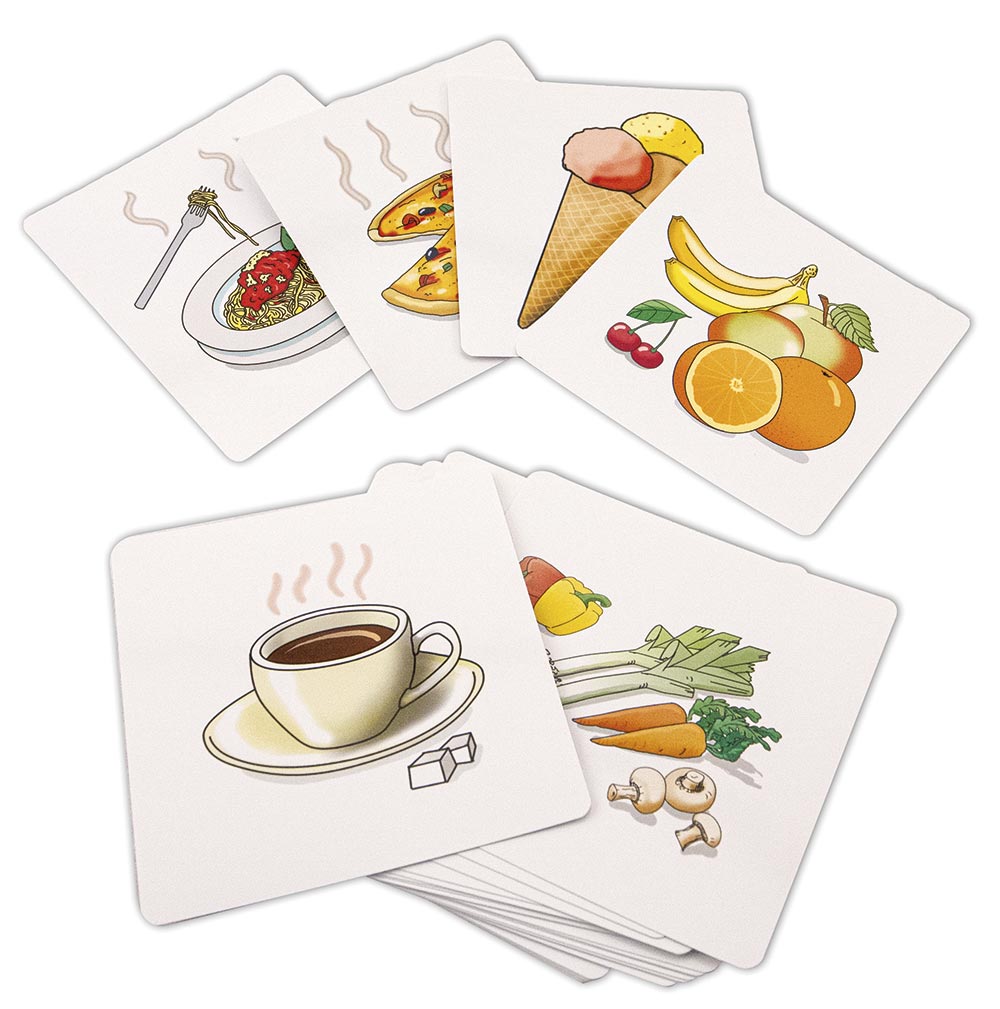 40 Karten mit 36 farbigen Bildkarten (12,5 x 12,5 cm) und Wortlisten