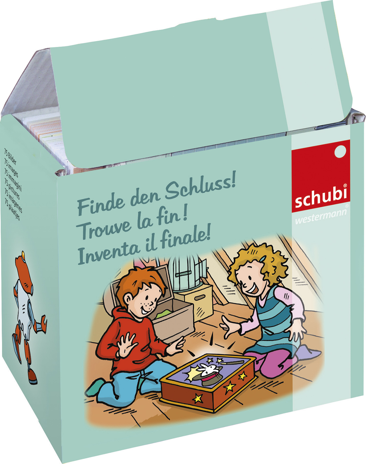 75 Karten: 14 farbige Bildergeschichten mit je 4 bis 6 Einzelkarten und 3 Symbolkarten, Format 9 x 9 cm, Anleitung