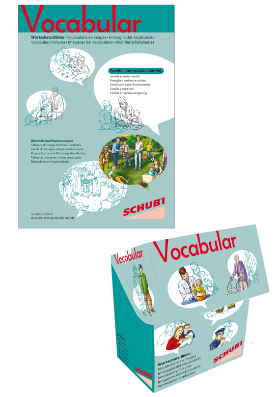 farbige Wortschatz-Bilder in der Klappbox (84-88 Bilder) und ca. 40 Kopiervorlagen passend zum Bildmaterial der jeweiligen Box