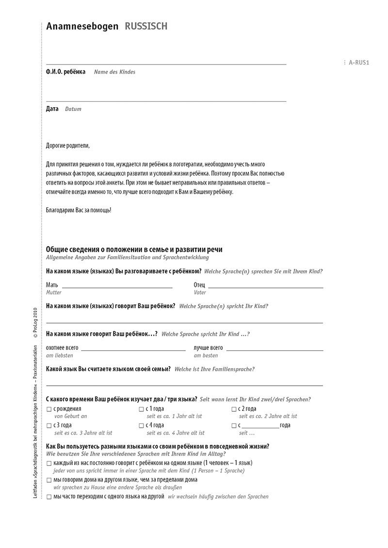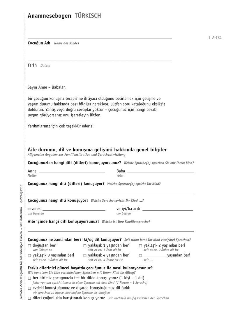 • Praxis-Materialien zur Anamnese in Deutsch, Türkisch und Russisch