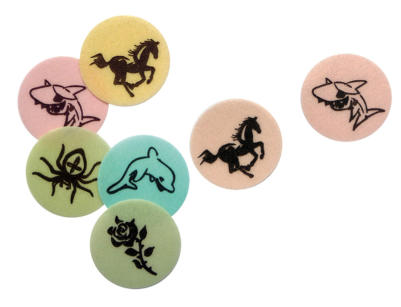 Witzige und essbare „Tattoos“ für die Zunge: Auflegen, kurz andrücken, wegnehmen, fertig. Anschließend die süßen Ess-Oblaten einfach auffuttern.