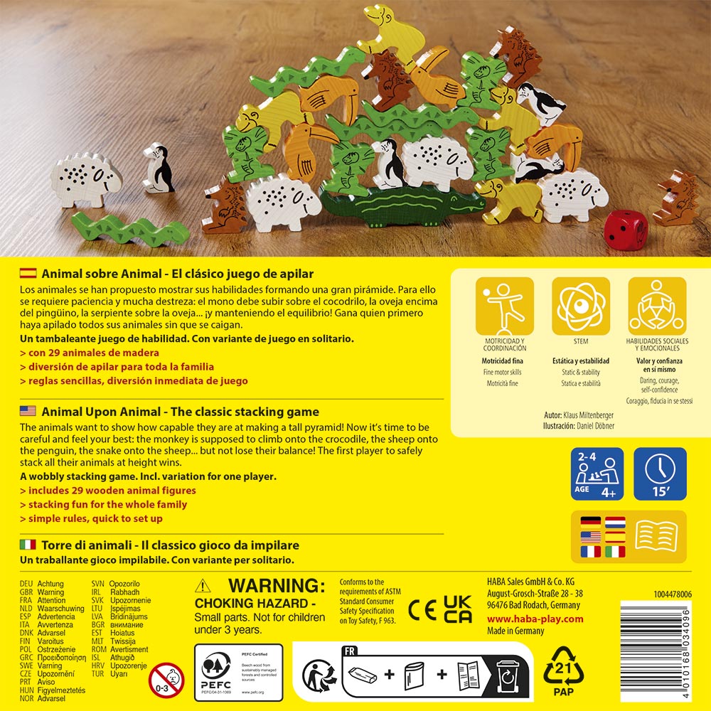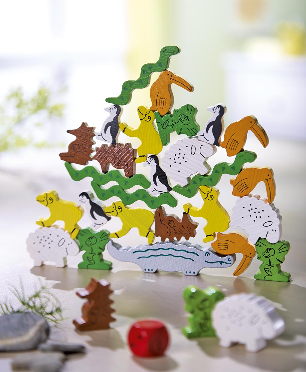 Die Tiere möchten ihr Kunststück zeigen: die große Pyramide! Dieses spannende Stapelspiel fördert die Auge-Hand-Koordination, die Feinmotorik und das dreidimensionale Denken des Kindes. Und nebenbei dürfen alle über die Namen der fast 30 Tiere rätseln.