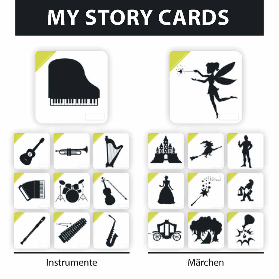 •10 My Story Cards - Premium Lernkarten mit den 2 Themenwelten „Instrumente“ und „Märchen“