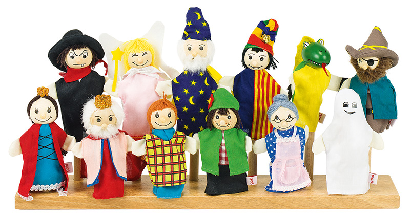 Mit den Fingern die Puppen bewegen und dabei in verschiedene Rollen schlüpfen. So werden Sprechen und Sprache ins Spiel gebracht.
