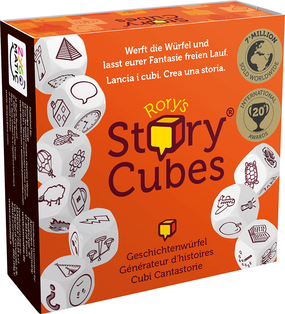 Rory’s Story Cubes® ist ein kreativer Geschichtengenerator im Taschenformat, der Kreativität und soziales Selbstvertrauen fördert, Sprachkenntnisse verbessert und Verbindungen und einzigartige Momente zwischen Jung und Alt schafft. In einer kompakten Box mit Magnetverschluss untergebracht sind die Story Cubes ideal, um überall Geschichten zu erzählen. Nehmt sie mit auf Reisen, in die Schule, zum Camping oder sogar ins Restaurant und erzählt eine Geschichte, während ihr wartet.