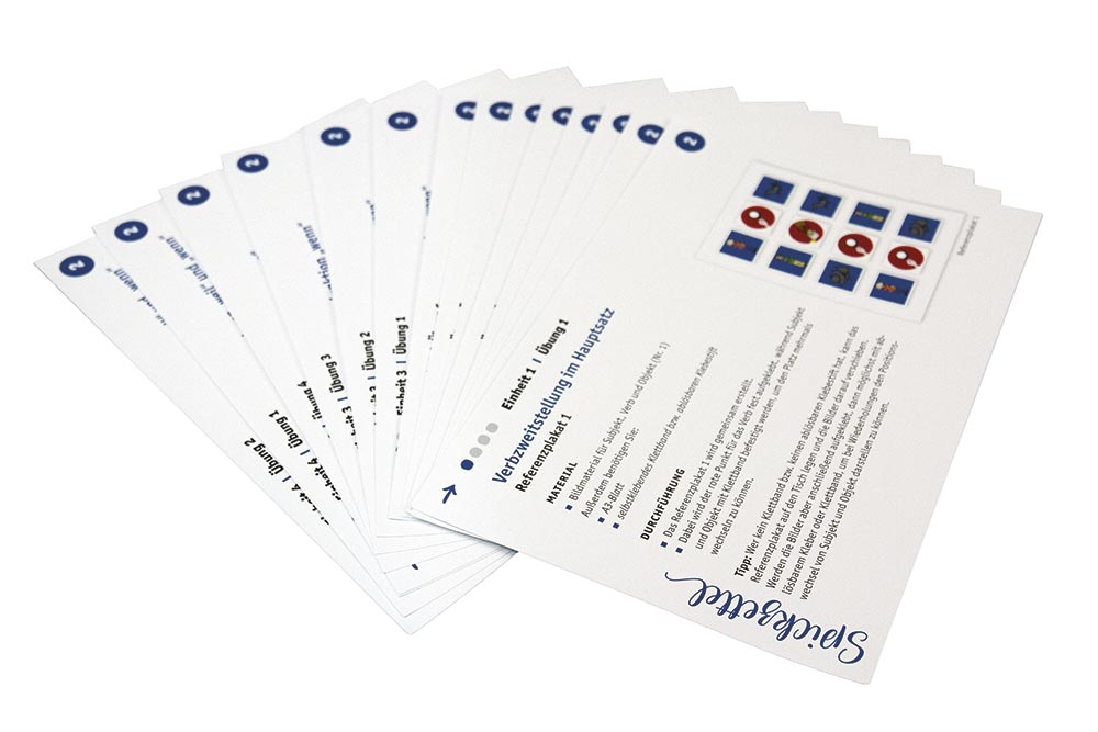 • Die Anleitungen und die „Spickzettel“ (Karteikarten im A5-Format) bieten Inhalte der Einheiten sowie Erläuterungen, Struktur- und Sortierhilfen übersichtlich an.