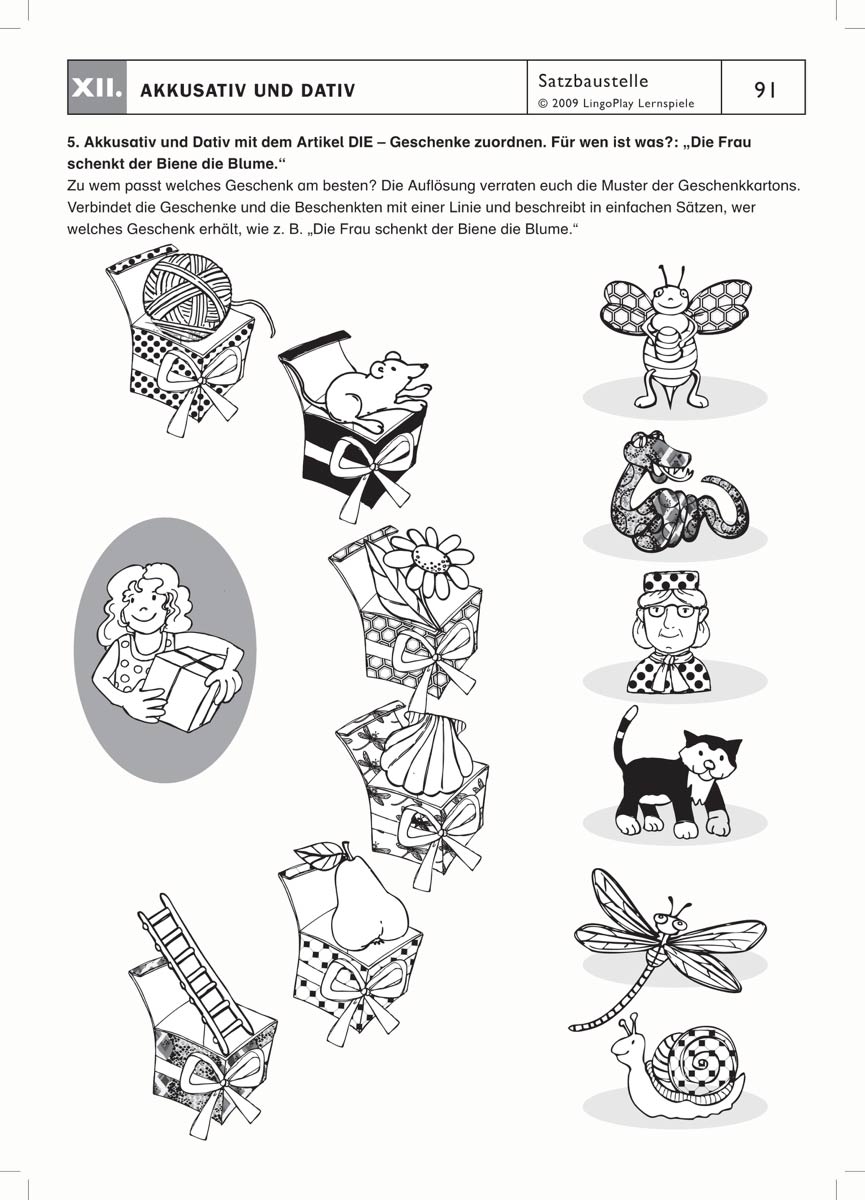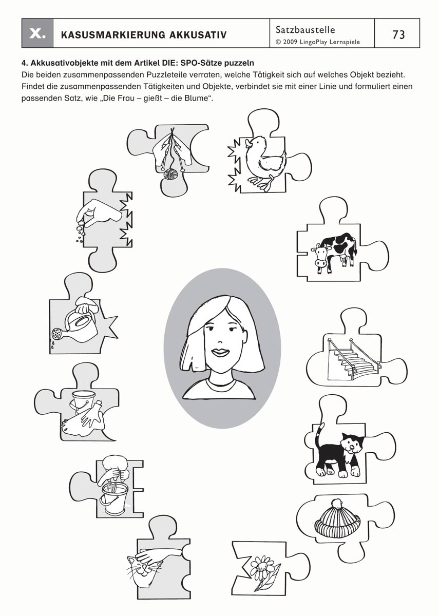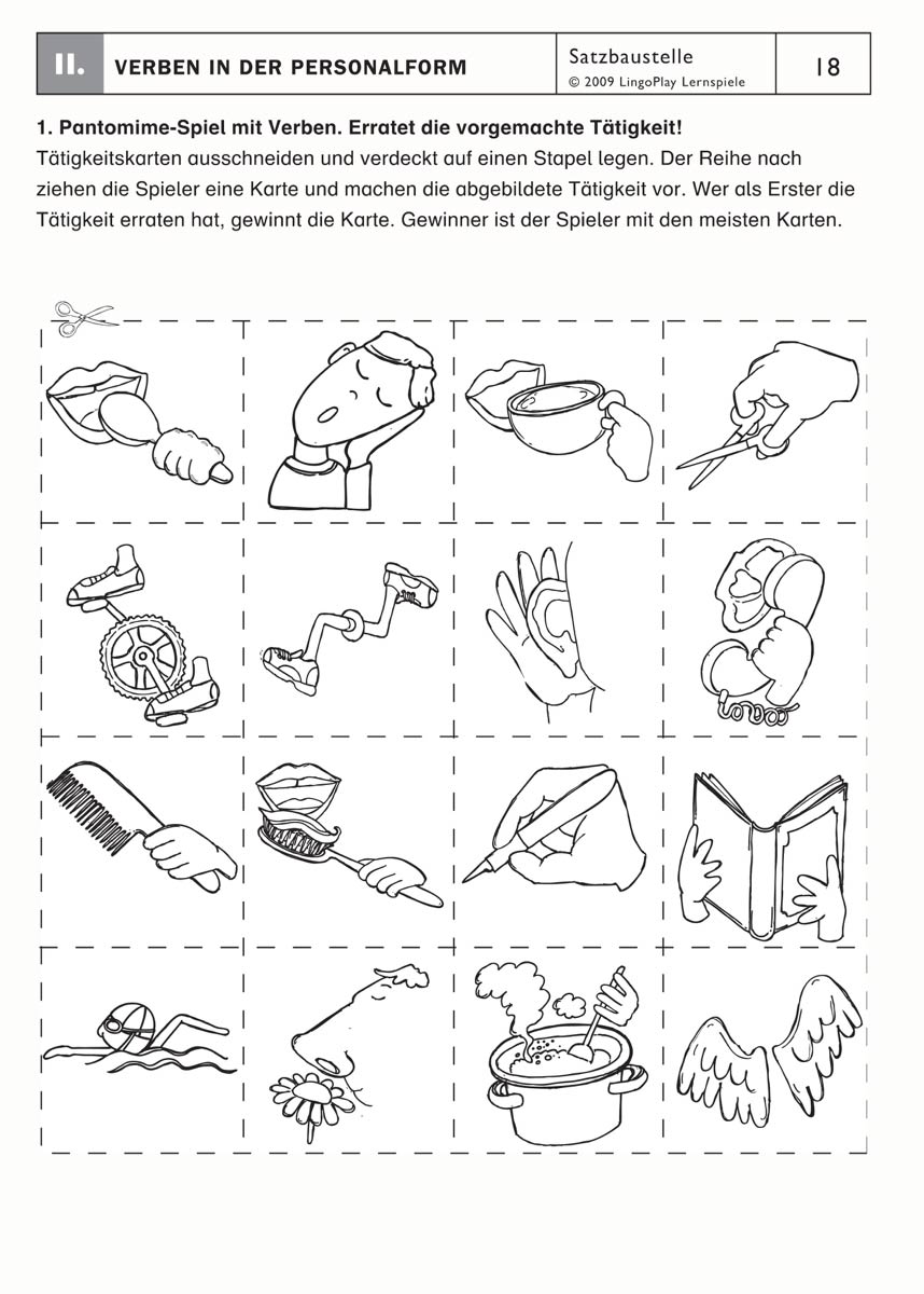 Die große, reich bebilderte Arbeitsmappe bilden ein aufeinander abgestimmtes Programm, das sich an den grammatischen Besonderheiten der deutschen Sprache orientiert und keine Schriftkenntnisse erfordern. Spielerisch lernen die Kinder regelmäßige und unregelmäßige Verben zu beugen, SPO- und Nebensätze zu bauen, Perfekt- und Pluralformen zu bilden und Wechselpräpositionen richtig zu verwenden. Die enge Verknüpfung von Spielhandlung und Sprechen macht diese Lernspiele ideal für die Sprachförderung in der Grundschule, Therapie und für den früheren DaZ-Unterricht.