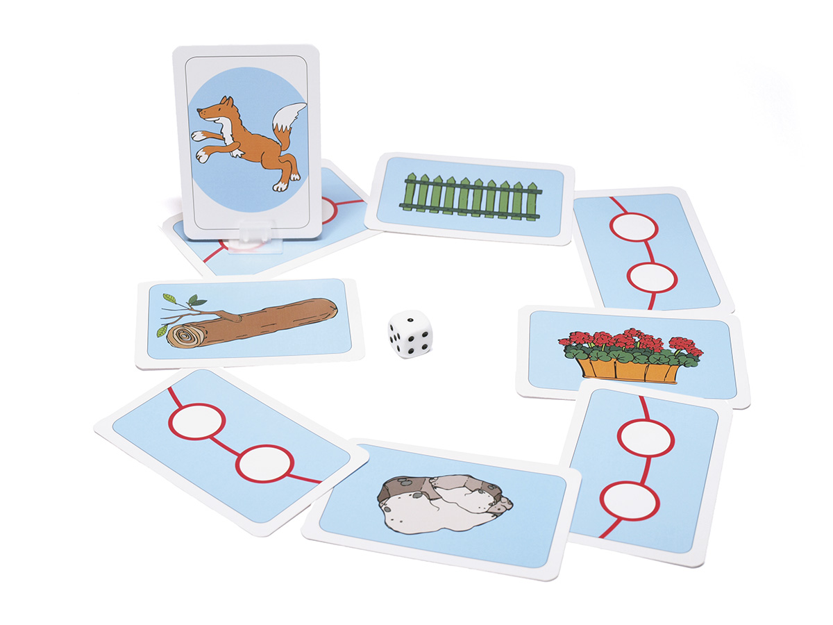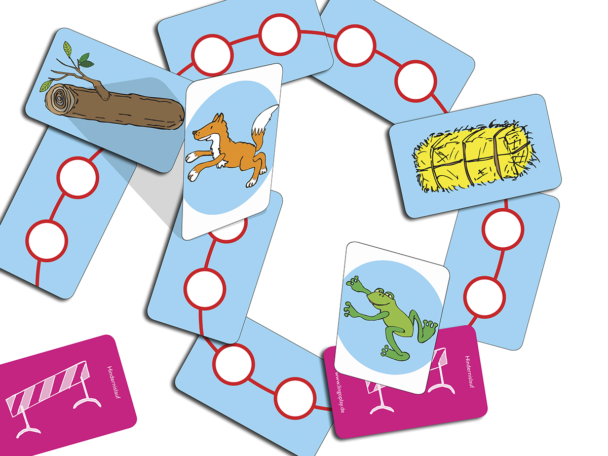 Ziel des Spiels Hindernislauf ist es, möglichst schnell ins Ziel zu kommen. Die Spieler ziehen reihum mit ihren Spielfiguren auf dem Spielfeld vor. Um die auf dem Weg liegenden Hindernisse zu überwinden, müssen die Spieler sich an deren Motive erinnern und Sätze formulieren wie »Der Fuchs ist über den Baumstamm gesprungen«. Nur wenn die Spieler Hindernismotive richtig benennen können, dürfen sie auf dem erreichten Feld stehen bleiben. Ansonsten fallen sie zurück. Der Spieler, der als Erster über das Zielfeld zieht, gewinnt.