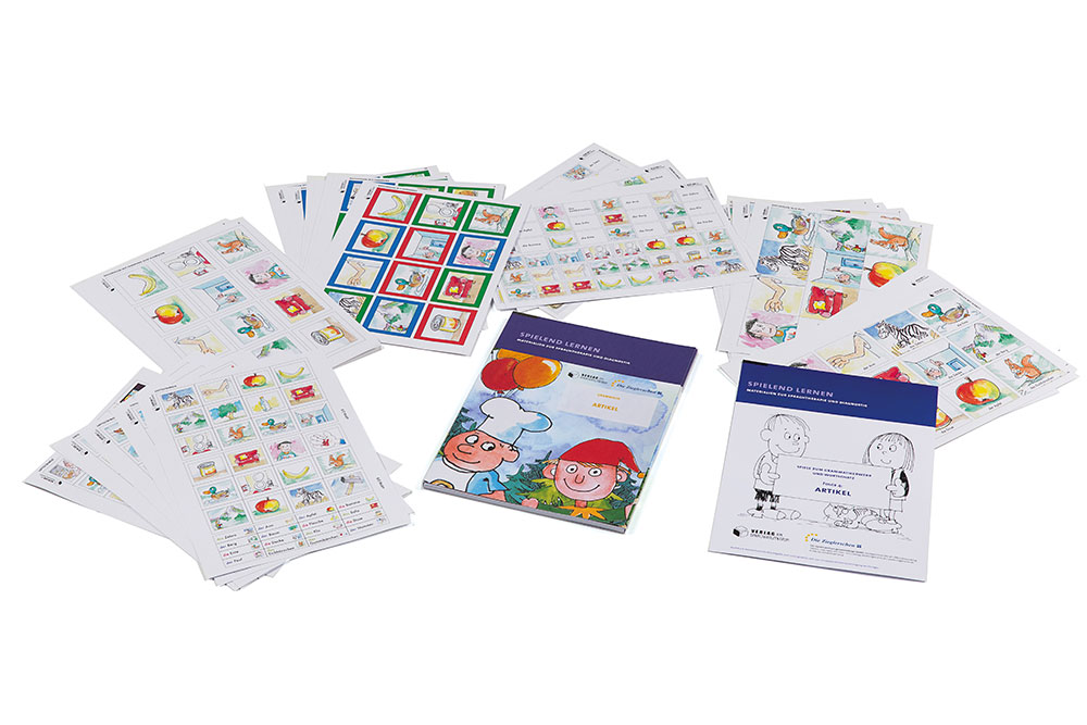 Mit diesem Spiel- und Übungsset fördern Sie den richtigen Gebrauch der Artikel »der, die, das« bei Kindern von 3 bis 10 Jahren. Unser umfangreiches Lern- und Übungsmaterial enthält verschiedene Spielkarten mit 120 ausgewählten Wörtern aus dem kindlichen Erfahrungsschatz (DAS Sofa, DER Apfel, DIE Ente). Genutzt werden dazu beliebte Spielformen wie Memory, Domino, Bingo und Klammerkarten.