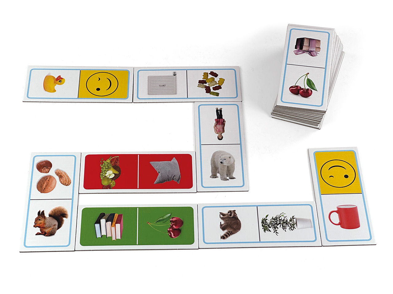 Ein Spielformat, das Elemente der bekannten Spiele Domino und UNO gewitzt miteinander kombiniert und Kinder spielerisch ähnlich klingende Laute unterscheiden lässt, die korrekte Aussprache und den Wortschatz trainiert.