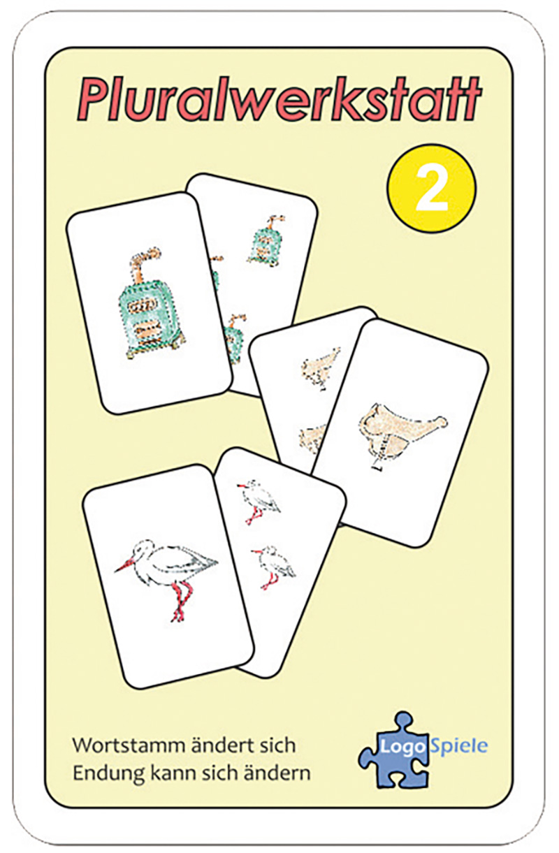 Die Pluralwerkstatt ist als Memo-Spiel konzipiert und im Therapiebereich genauso gut anwendbar wie im Förderbereich oder auch beim Üben zu Hause.