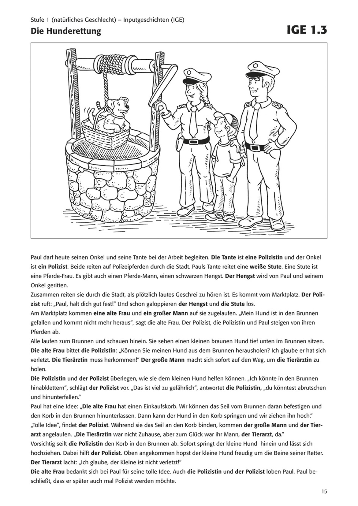 116 Seiten, A4, Handanweisung, 20 Inputgeschichten und -spiele, 90 Bildkarten mit Inputitems, 8 Bildkarten, 15 Arbeitsblätter, Spielpläne, Situationsbilder