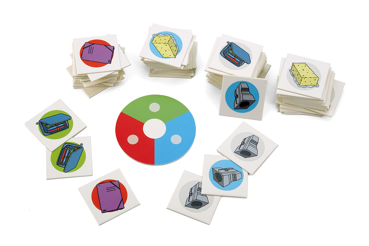 Die Spielidee: Je Spiel ist jeder Artikel je achtmal vertreten. Die Artikel ordnen sich jeweils einer Farbe zu: DER/blau, DIE/rot, DAS/grün. Jedes der 24 Bildmotive eines Spiels gibt es zweimal mit und zweimal ohne Artikel-Farbhilfen, um dann variiert eingesetzt zu werden.