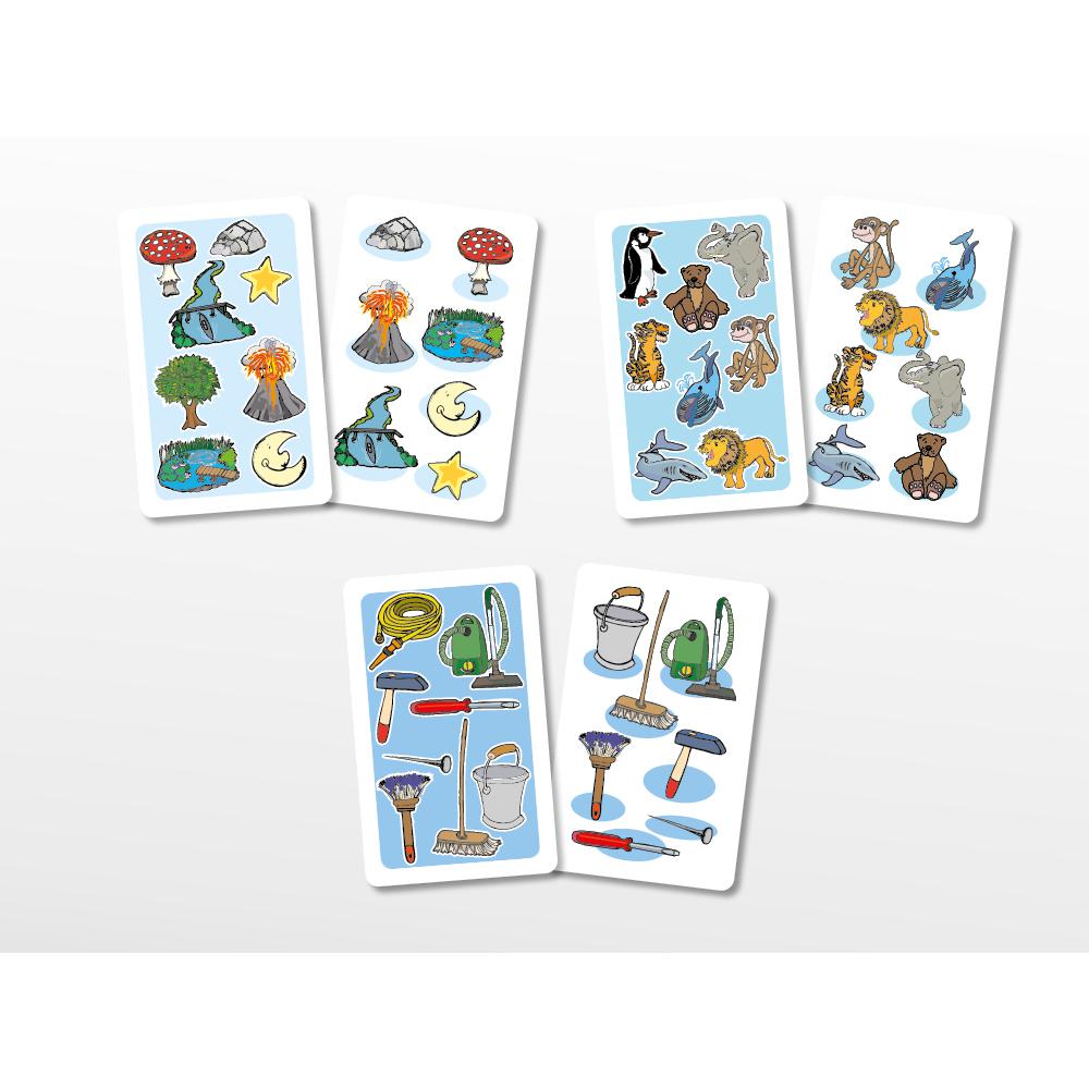 Die Spieler vergleichen zwei Bildkarten. Auf einer Karte fehlt jedoch ein Motiv, und es ist die Aufgabe der Spieler, herauszufinden, welches. »Was fehlt hier? Der Baum, der Mond oder der Stern?« Wer als Erster das fehlende Motiv nennt, gewinnt die Karte. Eine einfache Spielweise mit großer Wirkung! Denn beim Spielen benennen die Kinder die fehlenden Motive intuitiv mit dem Artikel.