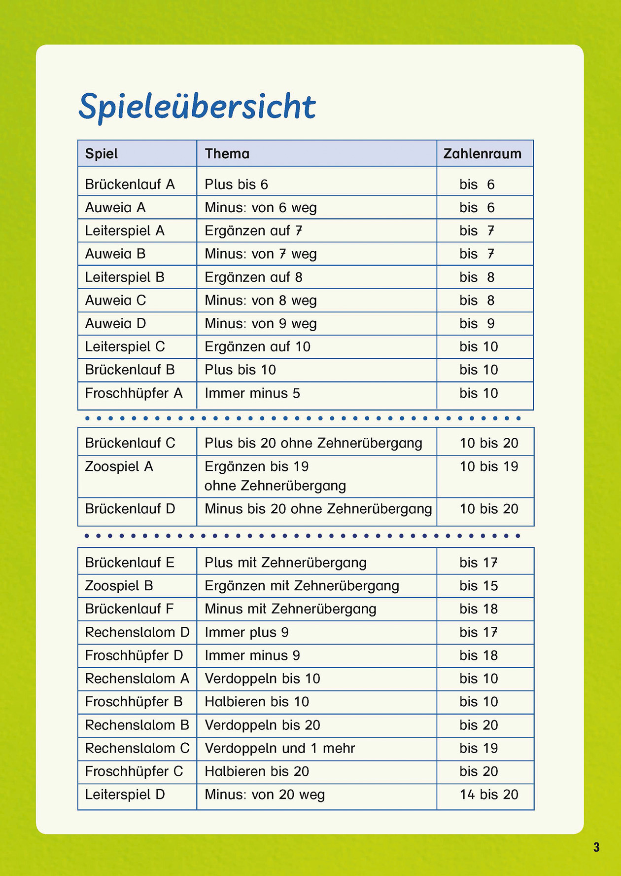 24 bunte Lernspiele machen das Festigen und Üben der grundlegenden Rechenoperationen zur spannenden Tätigkeit zu zweit oder in kleinen Gruppen. Ein prima Fundus für Stationentrainings / Postenarbeit, für zwischendurch, für die pädagogische Vorviertelstunde, für Stunden- bzw. Tagesausklang und zur Wiederholung im 2. Schuljahr.