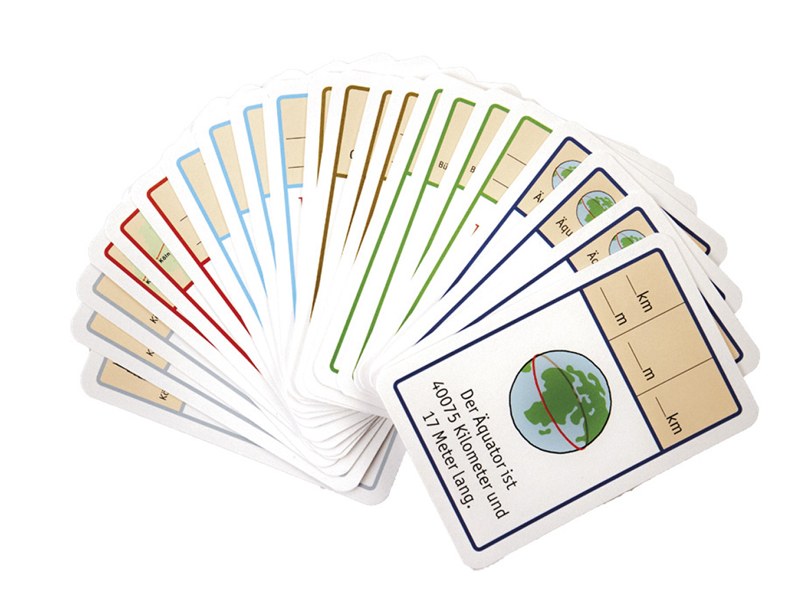 Dieses Spiel aus der beliebten MatheFix-Reihe verdeutlicht in jeweils viel unterschiedlichen Darstellungsweisen (z.B. 520 cm; 5,2 m; 5m und 20 cm sowie als Bild mit Beschreibung: "...ist 5m und 20 cm lang") eine Längenangabe. So werden abstrakte Maße und Zahlen auch für Kinder mit Dyskalkulie verständlich gemacht.