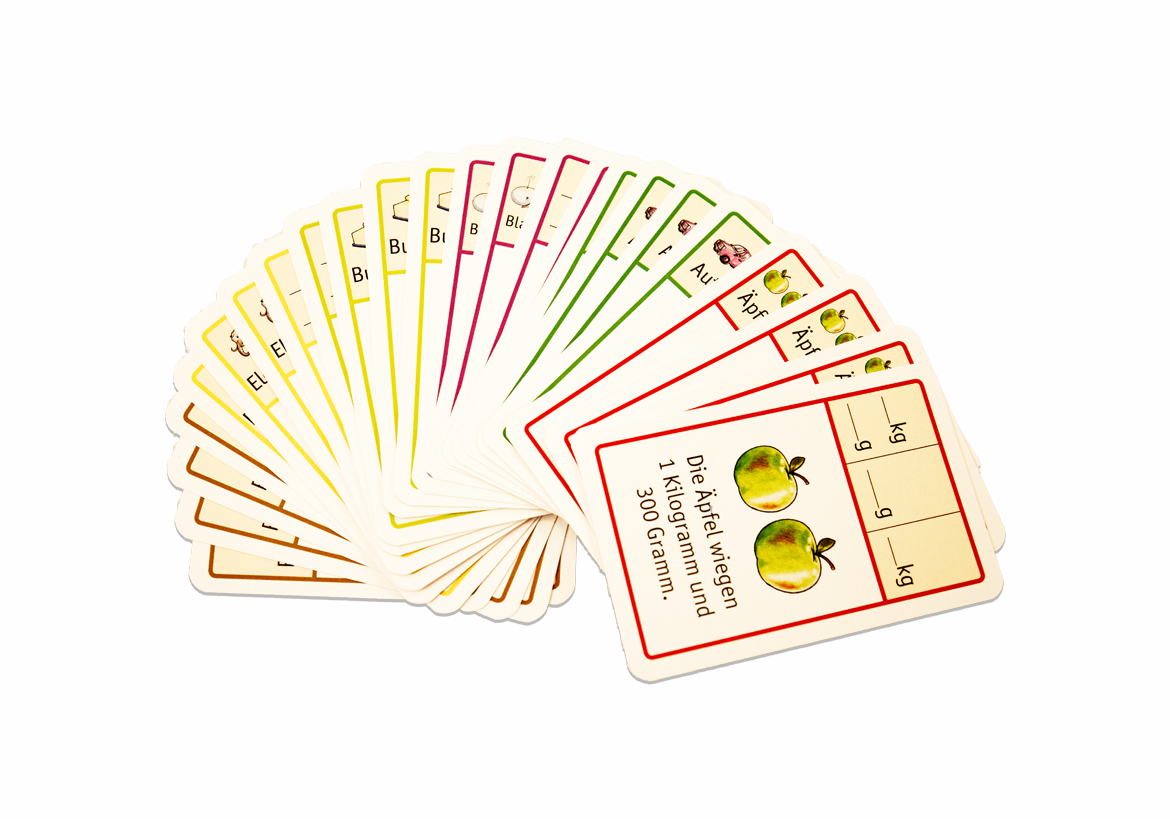 Die MatheFix-Quartette lassen spielerisch Rechenwege verstehen und trainieren. Jeweils vier Karten mit vier Aufgaben werden dabei zu einem Quartett gesammelt. Die Analogie der vier passenden Aufgaben können auch Kinder mit Dyskalkulie aufgrund der anschaulichen Mengenbilder erkennen.