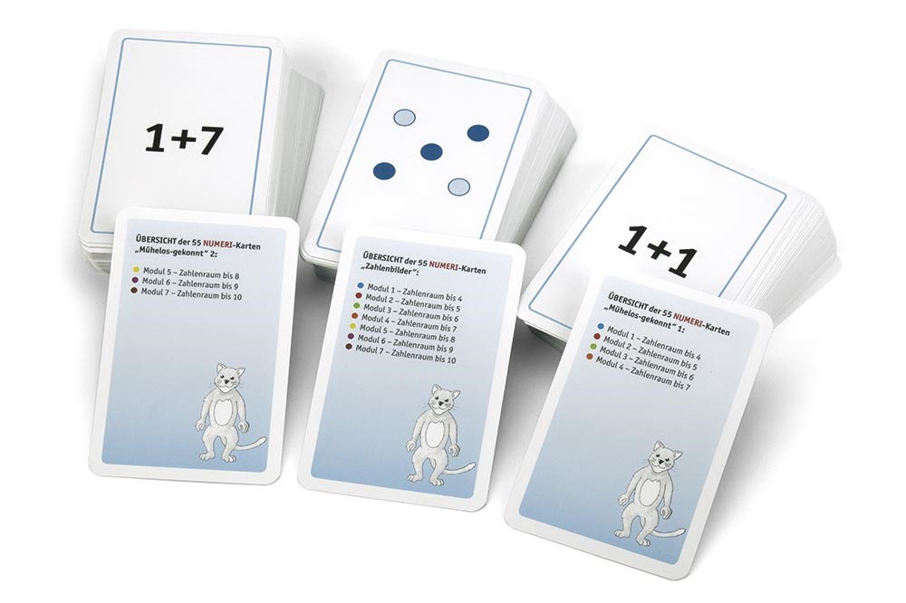 Die drei Kartenspiele aus dem NUMERI-Ordner zum Nachbestellen. So können mehrere Förder- oder Therapiekräfte parallel arbeiten.