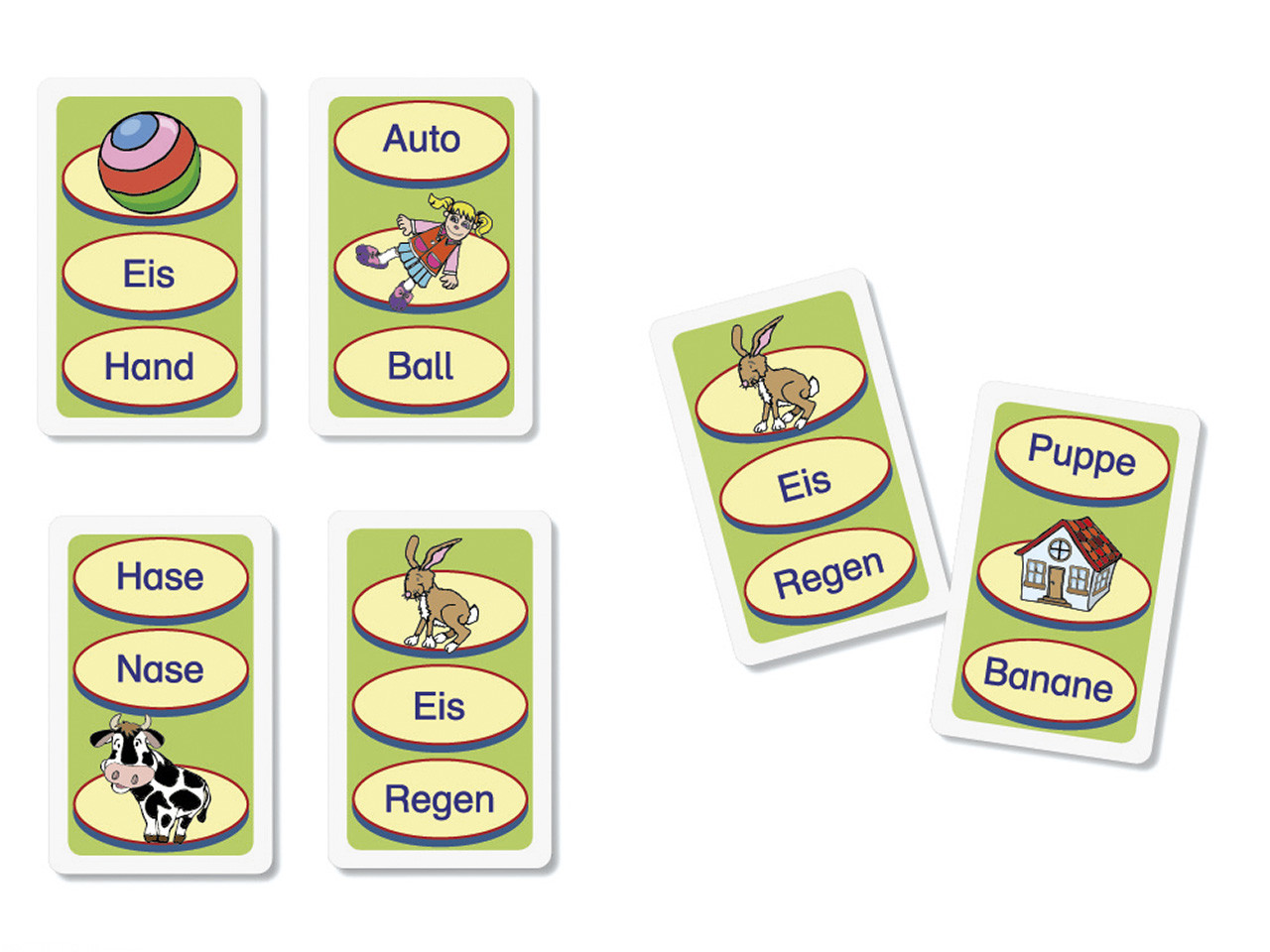 In diesem Spiel trainieren die Kinder, einfache Wörter aus dem Grundwortschatz auf einen Blick zu erfassen. Blitzschnell müssen sie erkennen, ob es zwischen zwei Karten eine Wort-Wort-, eine Bild-Bild- oder eine Wort-Bild-Übereinstimmung gibt. Damit bereitet das Spiel die Kinder ideal darauf vor, flüssig und verstehend zu lesen.